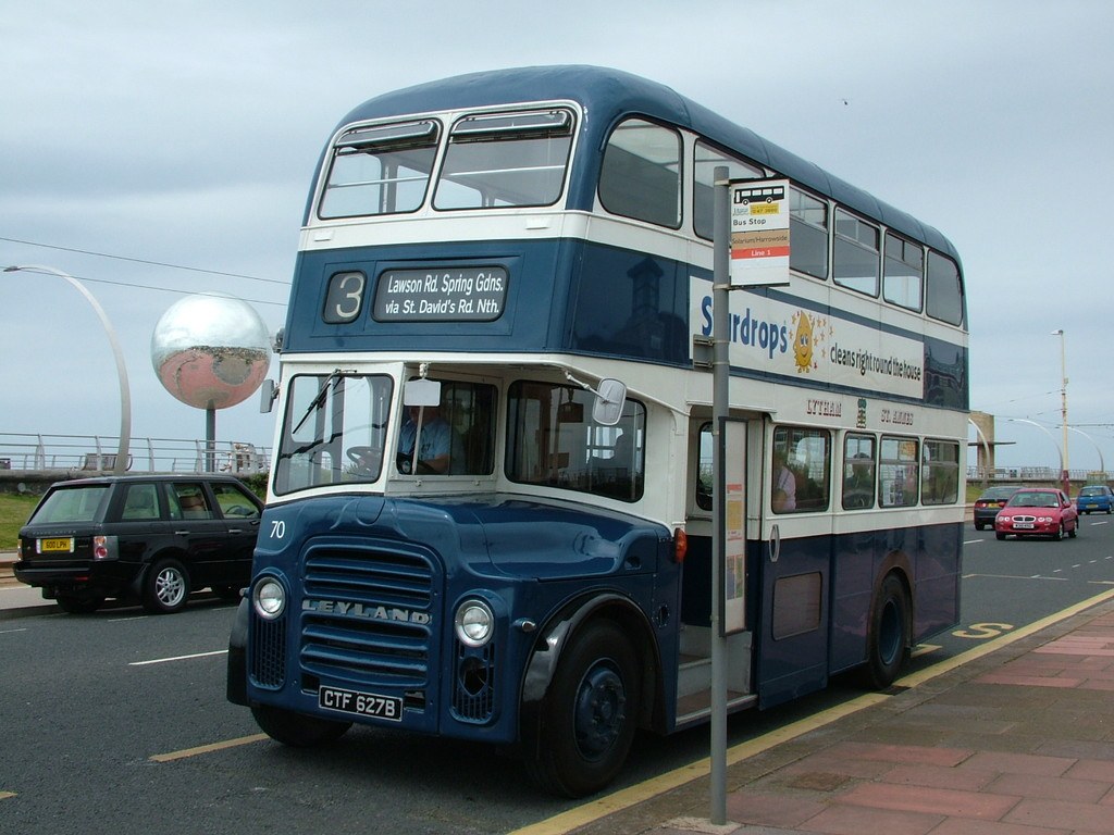 By contrast to Blackpool, Lytham’s bus fleet was small – typically around 35 to 40 vehicles. With much summer duplication, buses were not unduly taxed and achieved long lives, if not necessarily high mileages. Leyland double deckers predominated after the war, just like Blackpool. One Person Operation commenced in 1969 and the town routes were all converted by 1972 with the Blackpool routes following during the 1970s. Local Government reorganisation saw a larger Fylde Borough Council absorb Lytham St. Annes and its bus operations.