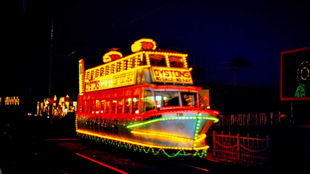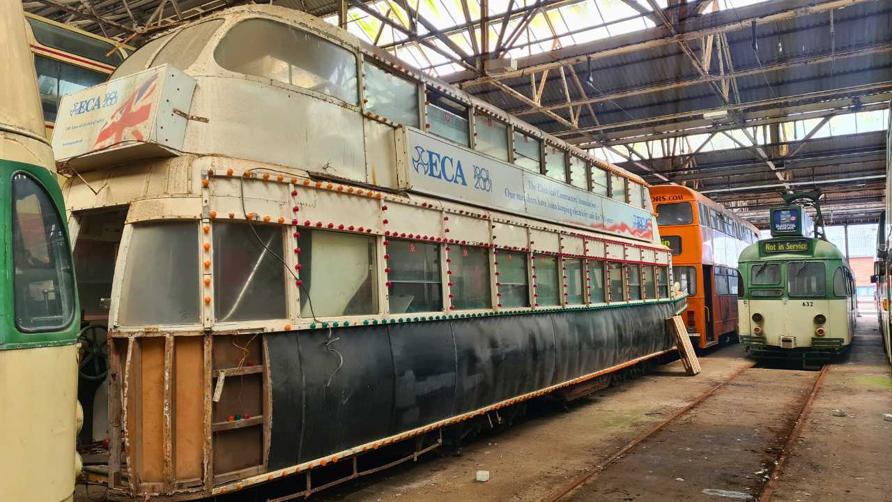 735 was rewired for the 1980 season (missing 1979), and continued in use each autumn, with the advertising changing from time to time, until it was withdrawn from use after the 2001 season requiring major work. This work wasn’t sanctioned, and in 2007 it was sold for preservation to the Beith Transport Museum in Scotland. Ownership transferred to the North East Electric Traction Trust (NEETT) in Washington, County Durham, and the tram moved to their premises at the North East Land, Sea and Air Museum in 2011.