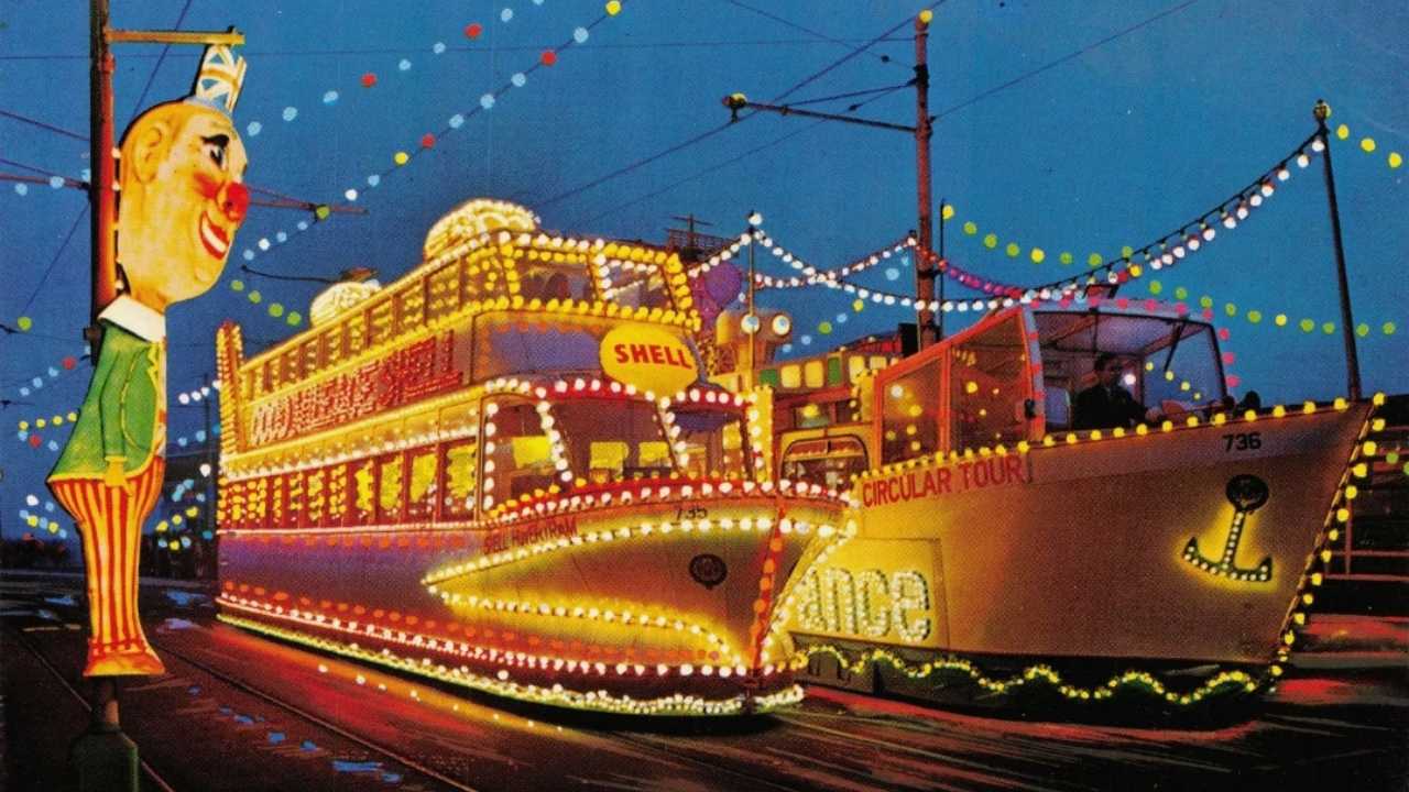 The “Hovertram” is an illuminated feature car built to give tours during the annual autumn illuminations. It was created in 1963 on the chassis of Railcoach 222 that had been withdrawn from use earlier that year, and is one of a small fleet of passenger carrying feature cars created between 1959 and 1965 that included a Mississippi paddle steamer, a space rocket, a Wild West locomotive and carriage and a Royal Navy battleship! Except for the paddle steamer “Blackpool Belle”, all others still exist, and the “Rocket” is also in the collection of the trust.